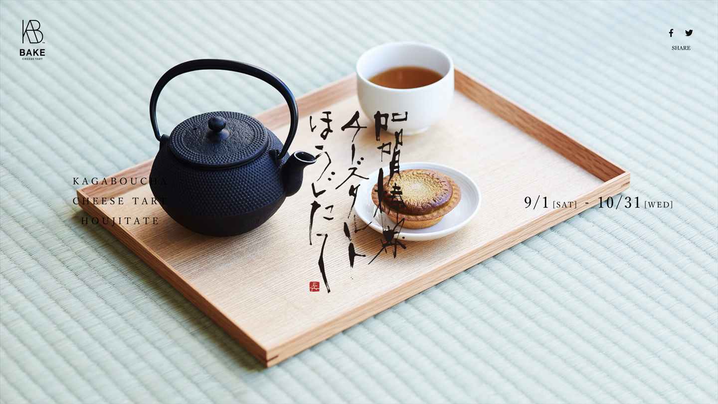 BAKE 期間限定フレーバー 「焼きたて 加賀棒茶チーズタルト ほうじたて」の特設ページをデザインしました。