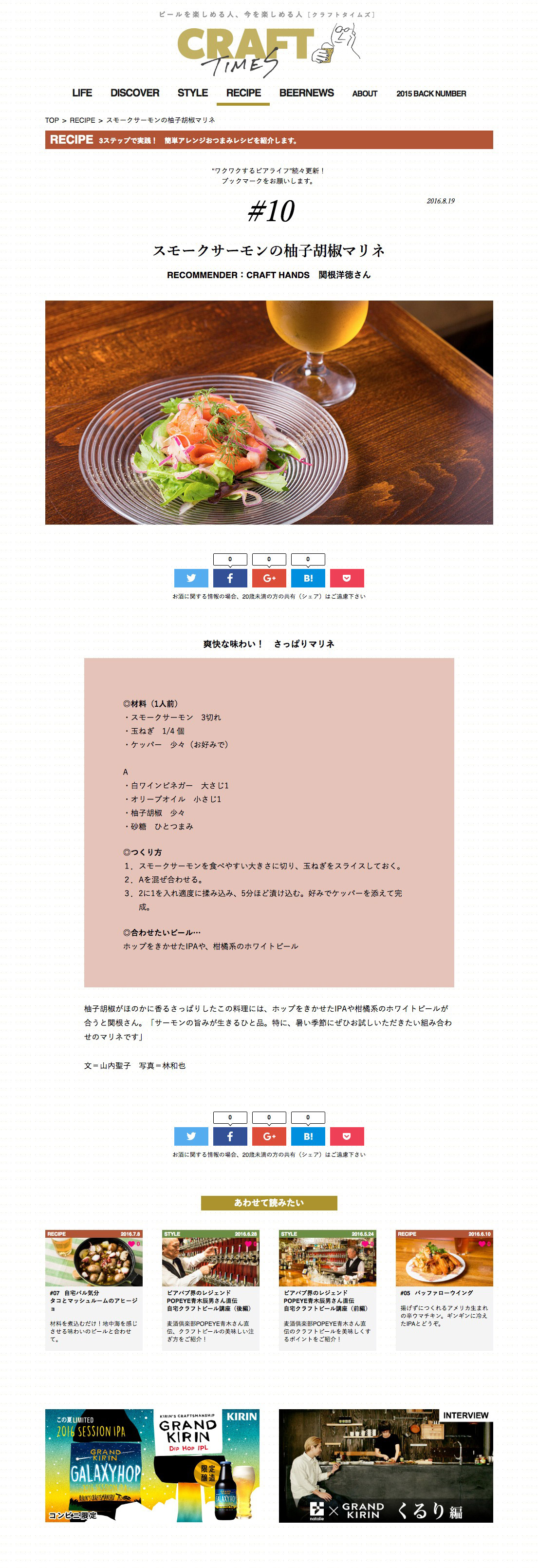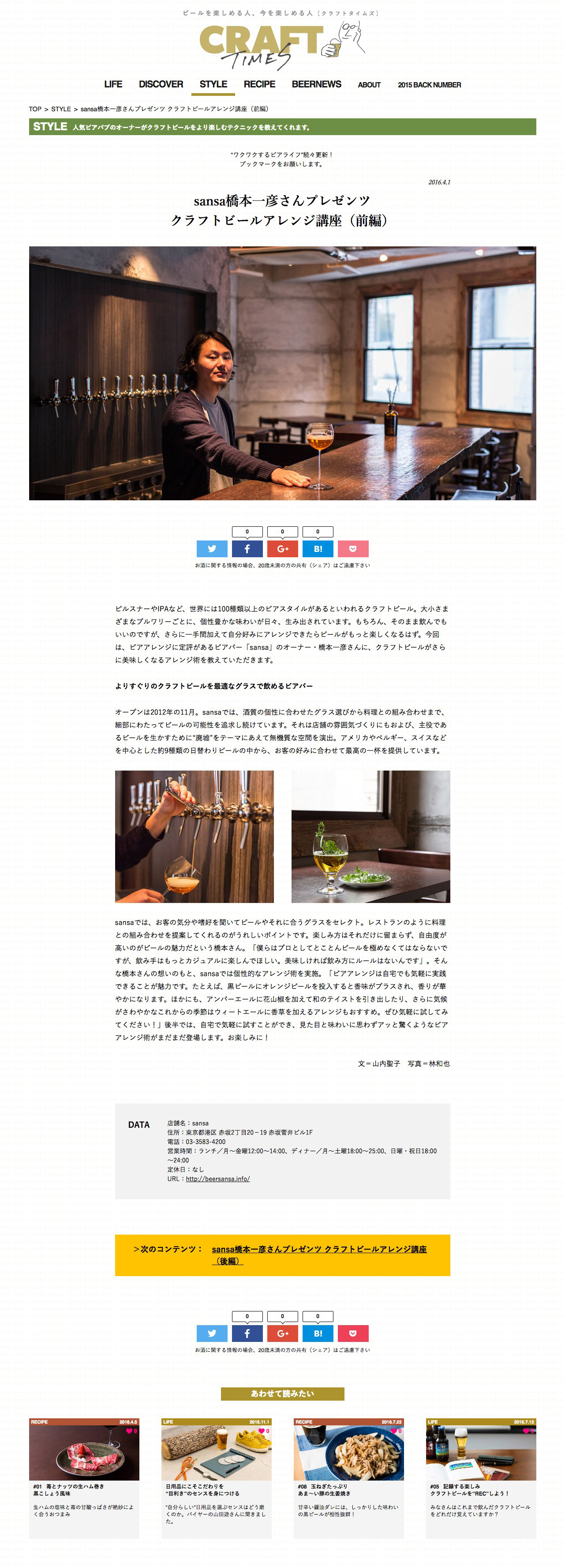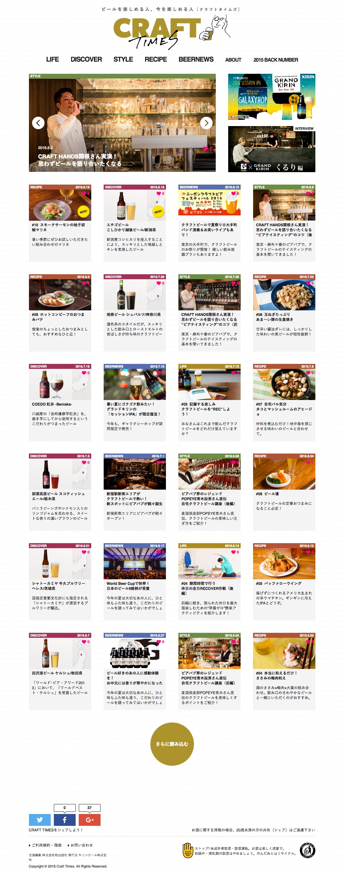 「クラフトビールのある暮らし」を、提案するウェブマガジン”CRAFT TIMES”のリニューアルのアートディレクションおよびデザインを担当しました。