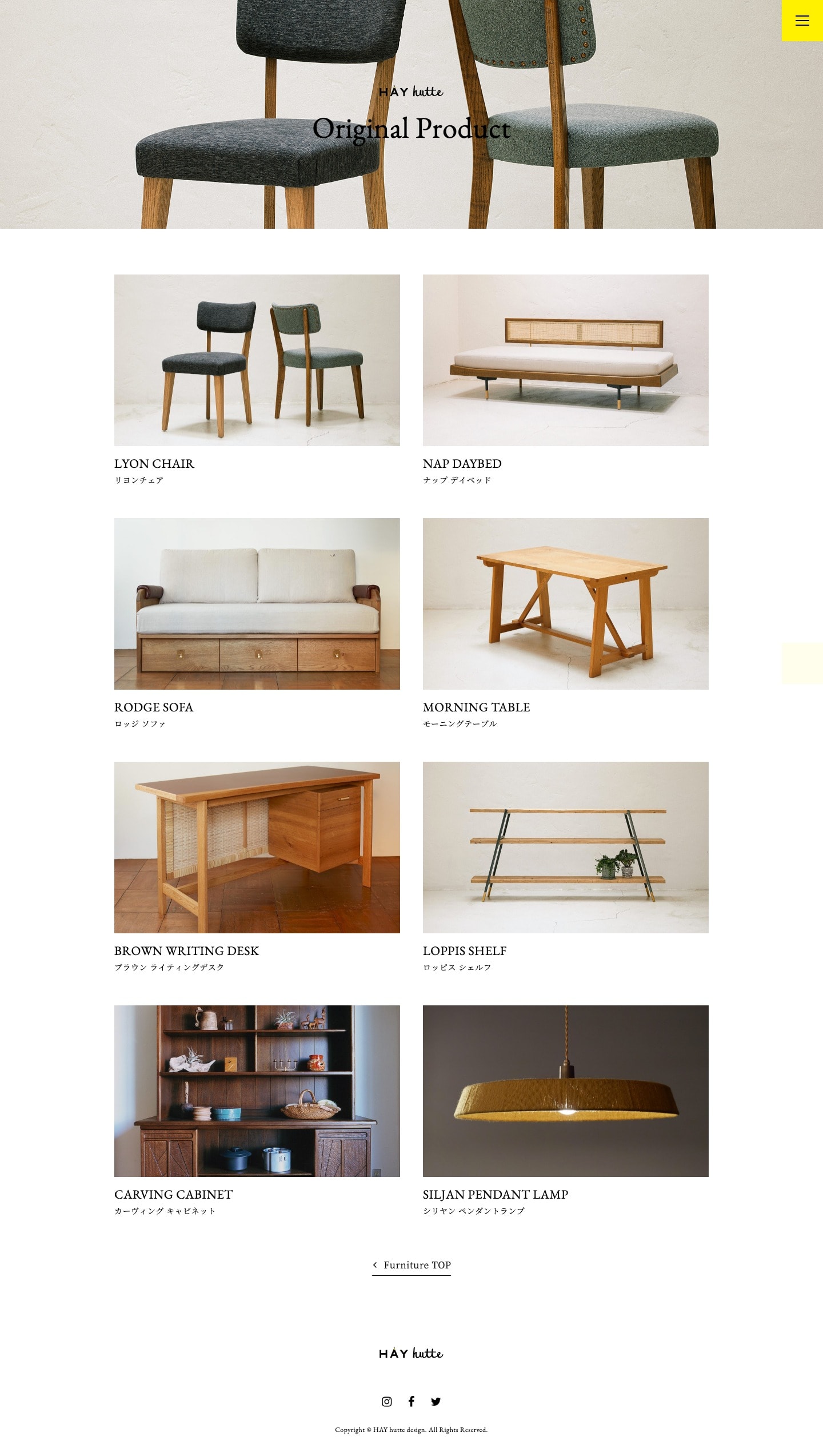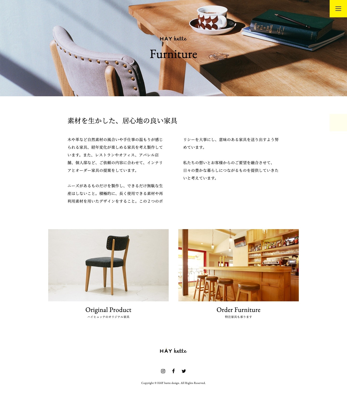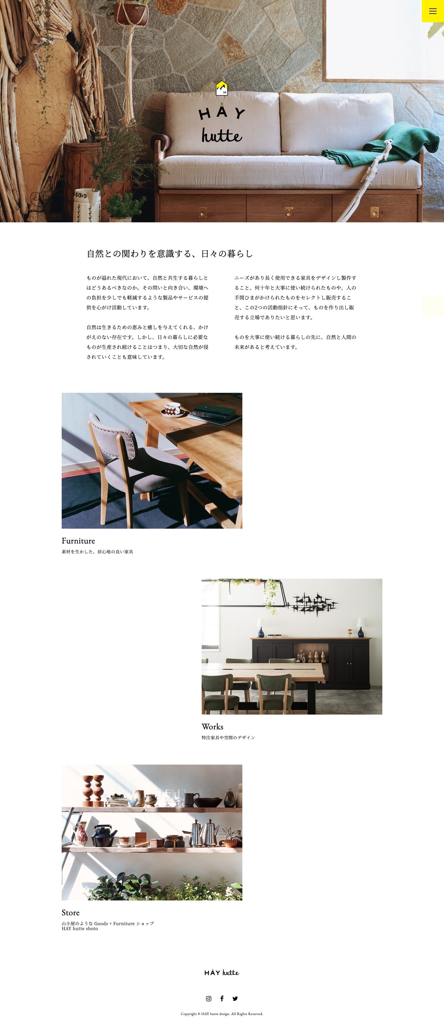 『自然との関わりを意識する、日々の暮らし』を提案するプロダクトブランド、HAY hutte designのウェブサイトを制作しました。